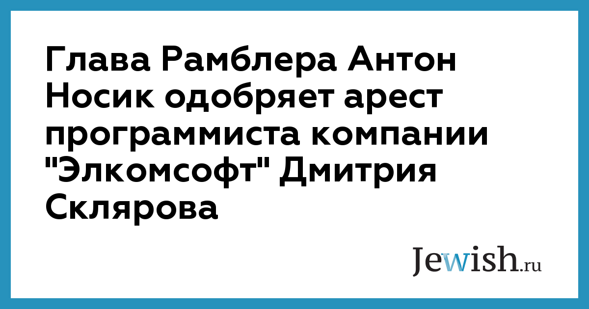 Глава Рамблера Антон Носик одобряет арест программиста компании "Элкомсофт" Дмитрия Склярова