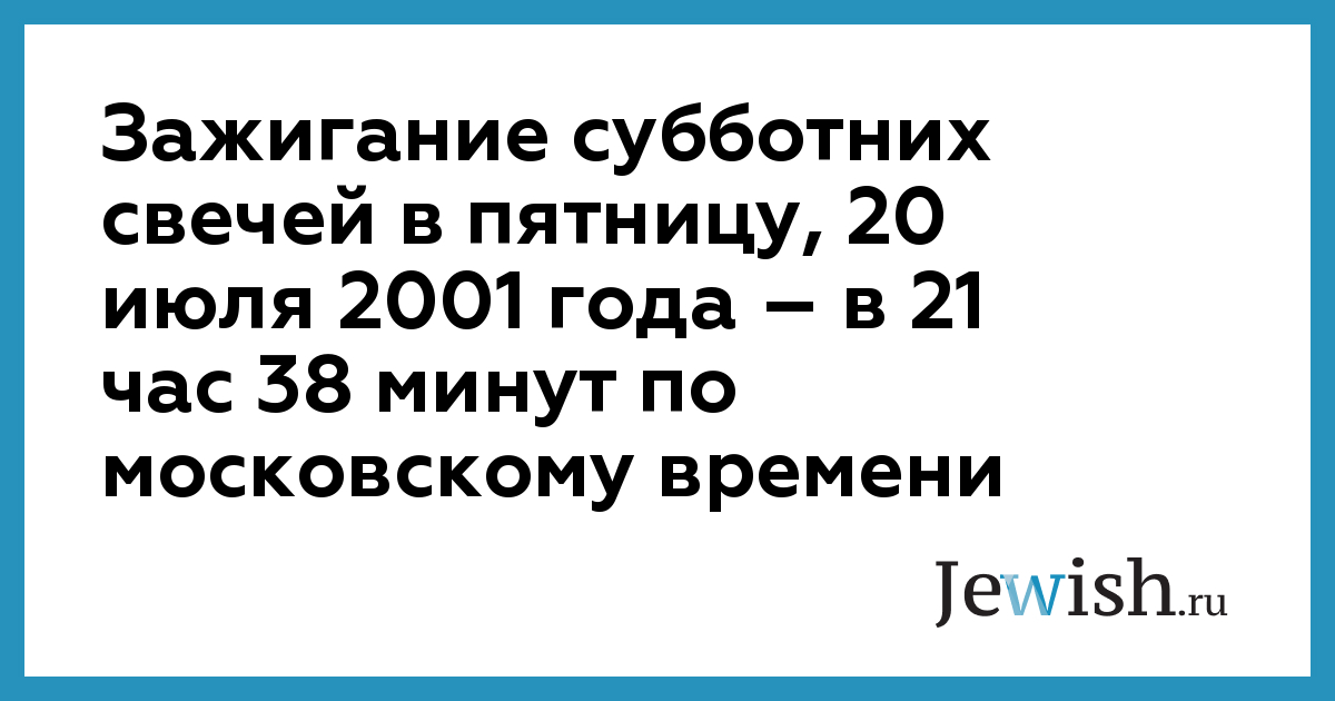 Зажигание субботних свечей в пятницу, 20 июля 2001 года – в 21 час 38 минут по московскому времени