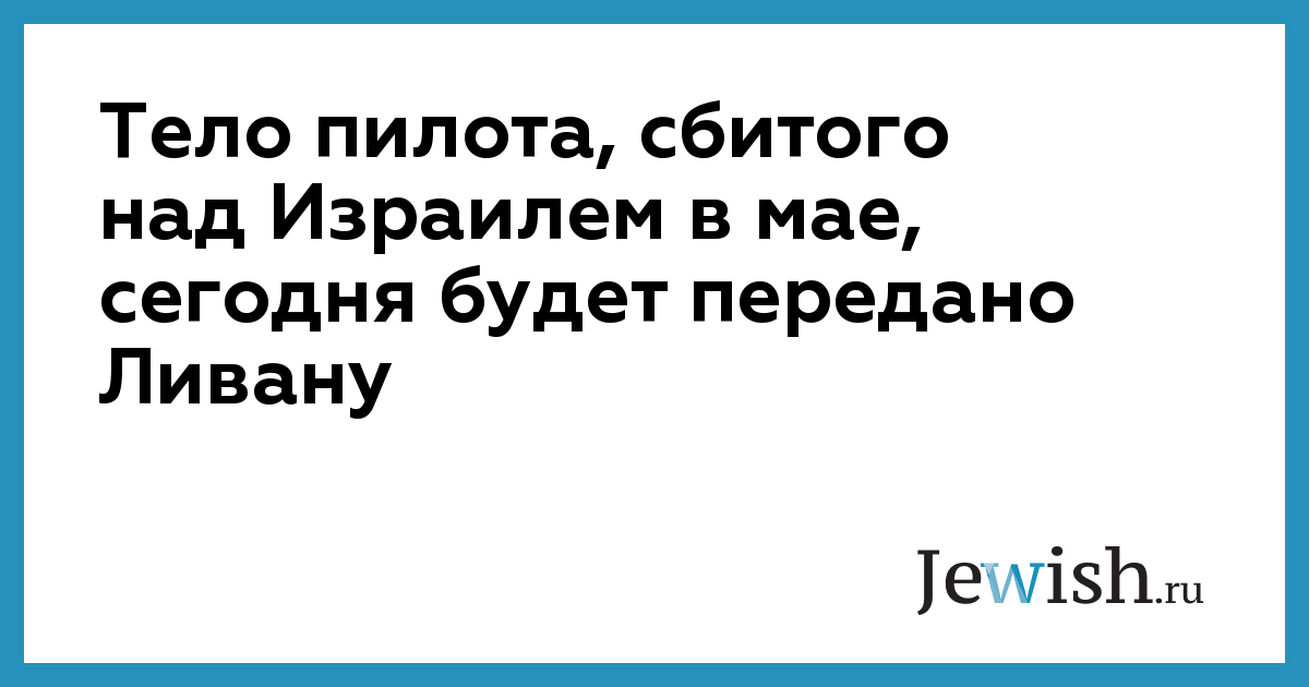 Тело пилота, сбитого над Израилем в мае, сегодня будет передано Ливану