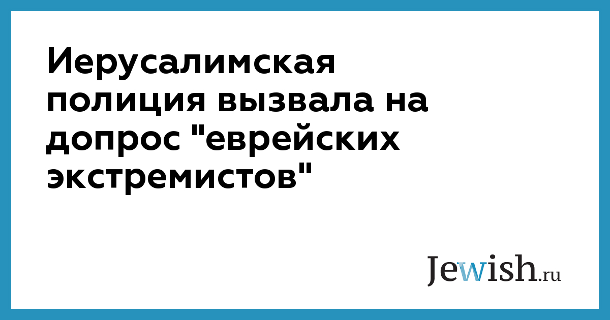 Иерусалимская полиция вызвала на допрос "еврейских экстремистов"