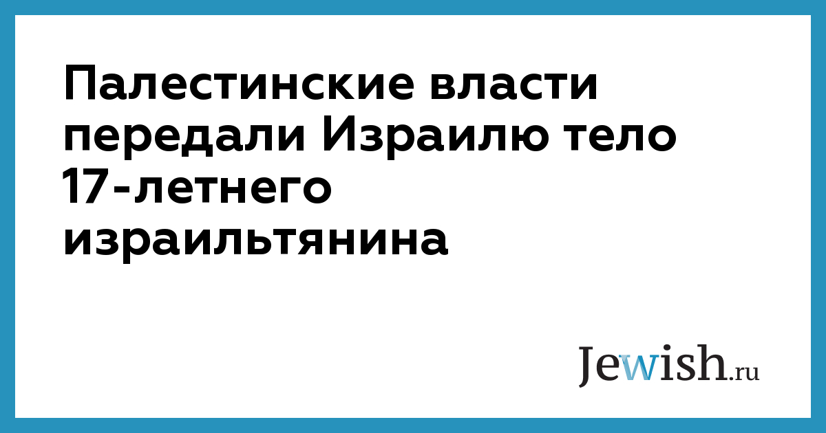 Палестинские власти передали Израилю тело 17-летнего израильтянина