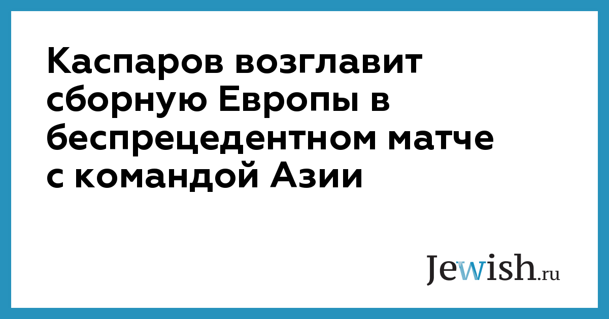 Каспаров возглавит сборную Европы в беспрецедентном матче с командой Азии
