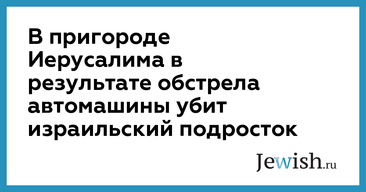 В пригороде Иерусалима в результате обстрела автомашины убит израильский подросток