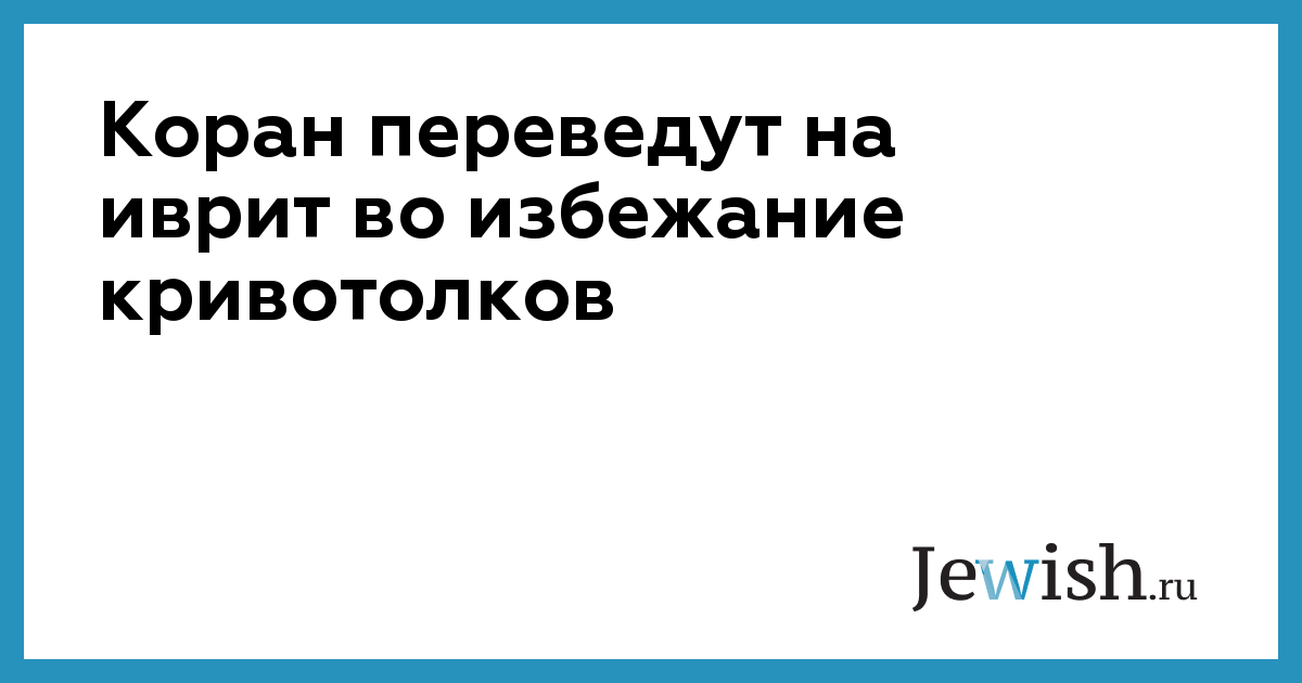 Коран переведут на иврит во избежание кривотолков
