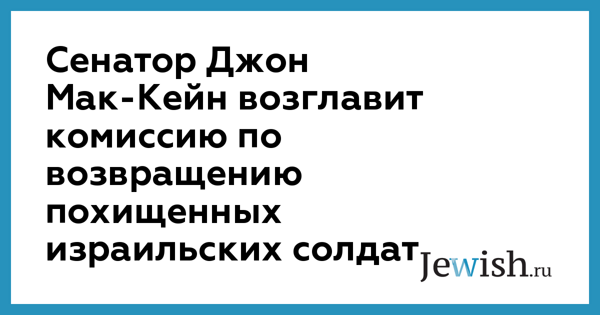 Сенатор Джон Мак-Кейн возглавит комиссию по возвращению похищенных израильских солдат