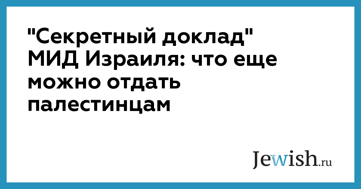"Секретный доклад" МИД Израиля: что еще можно отдать палестинцам