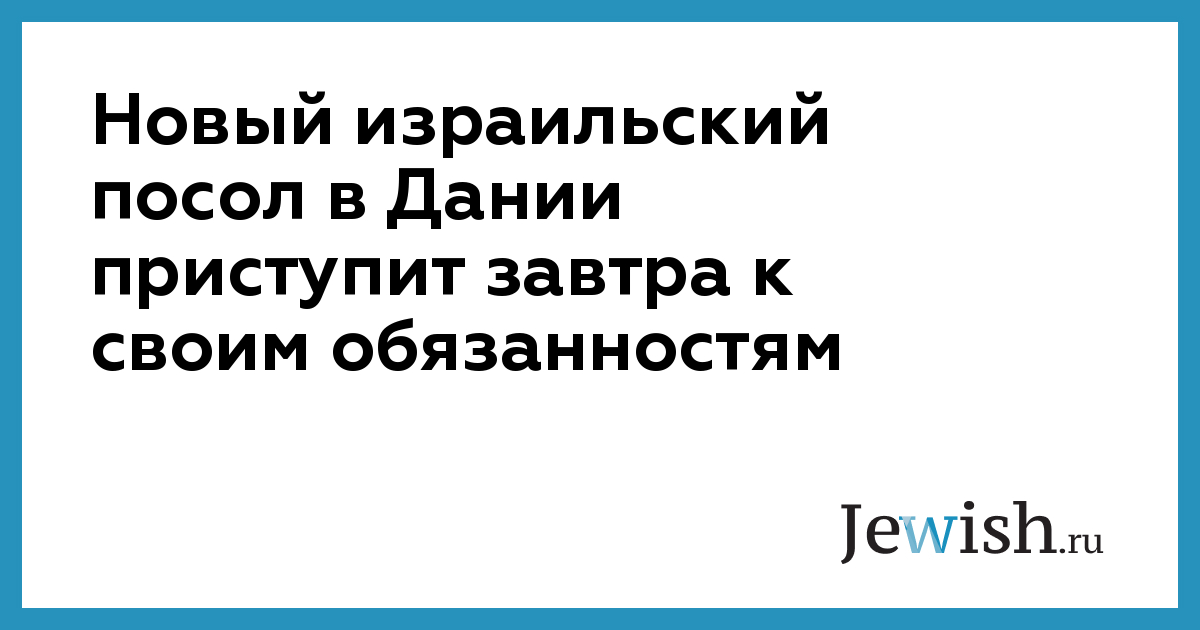 Новый израильский посол в Дании приступит завтра к своим обязанностям