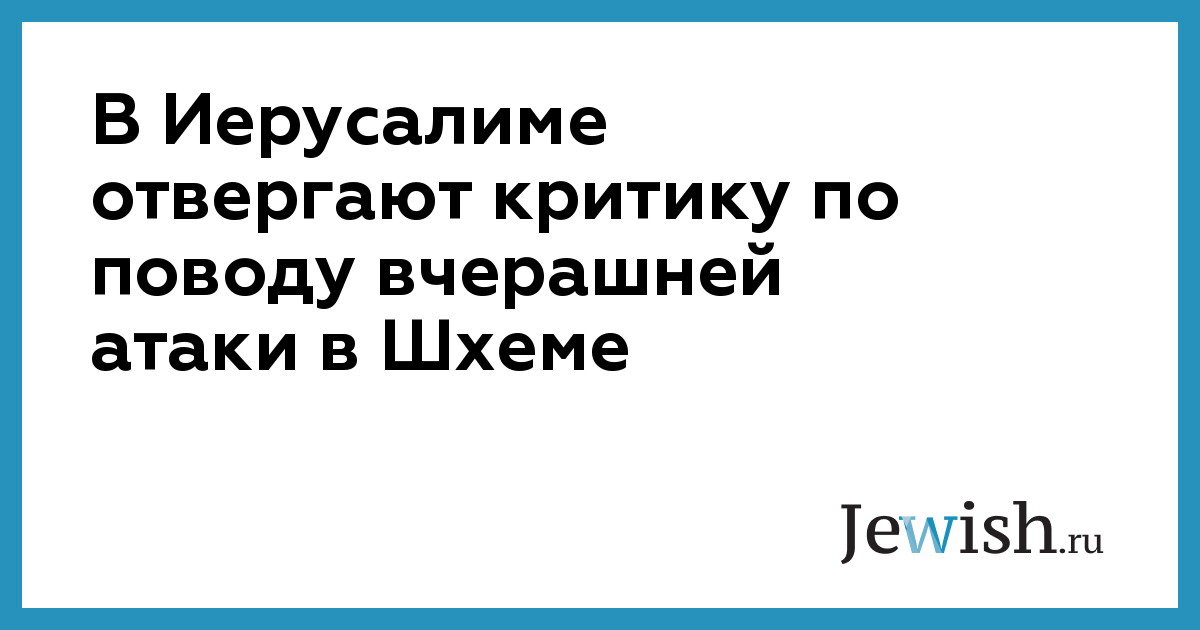В Иерусалиме отвергают критику по поводу вчерашней атаки в Шхеме