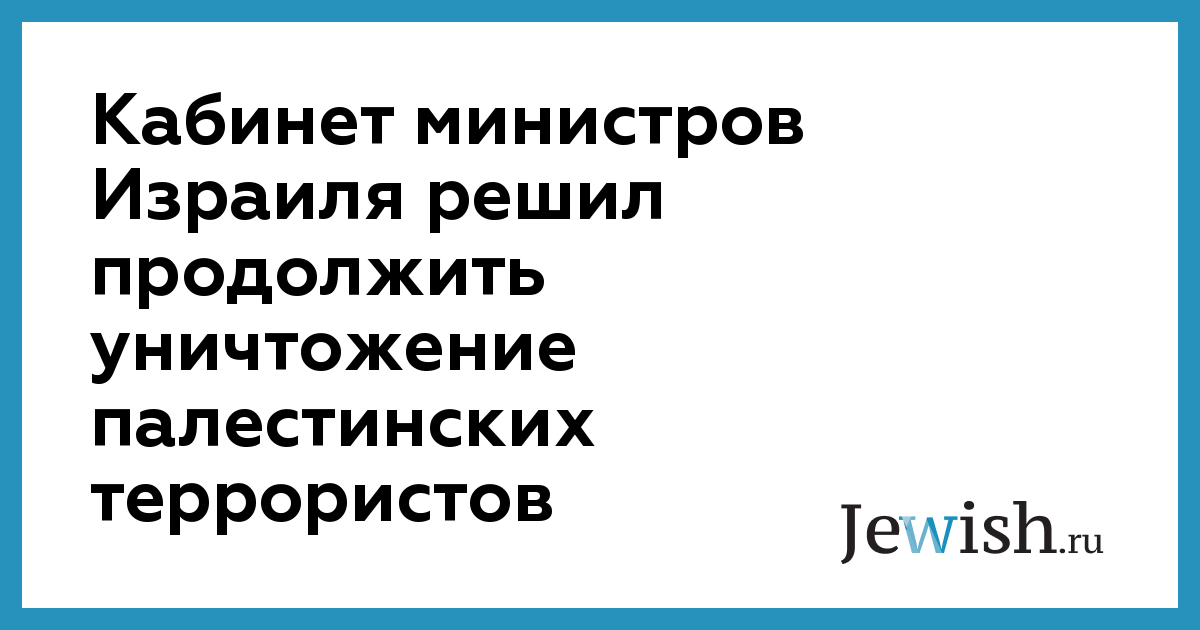 Кабинет министров Израиля решил продолжить уничтожение палестинских террористов