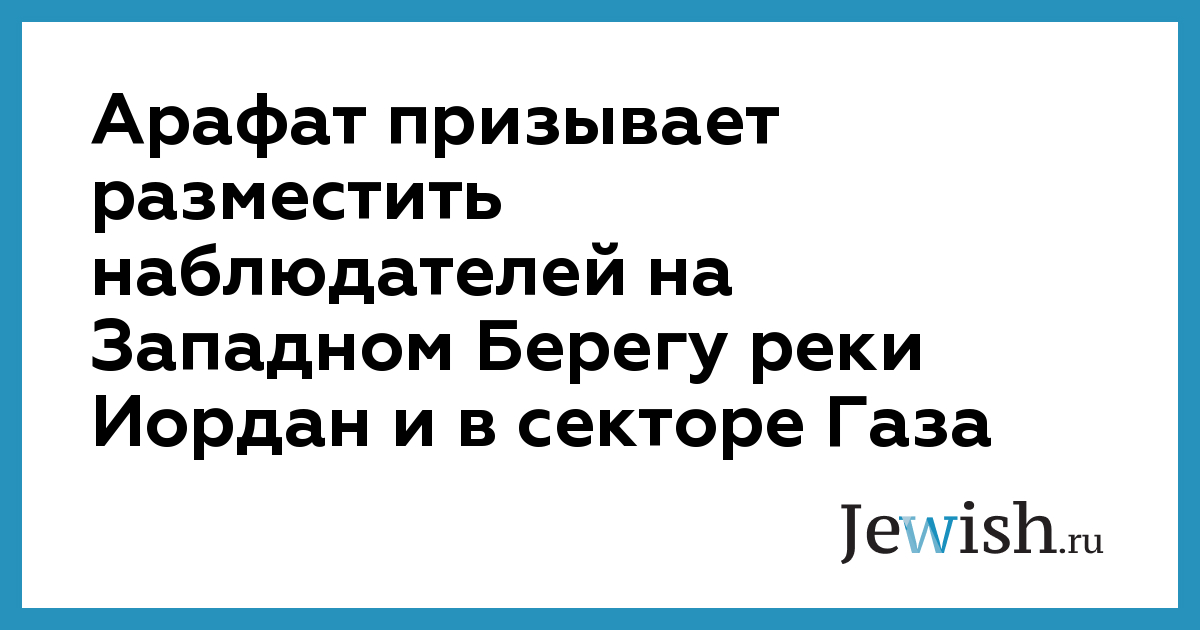 Арафат призывает разместить наблюдателей на Западном Берегу реки Иордан и в секторе Газа