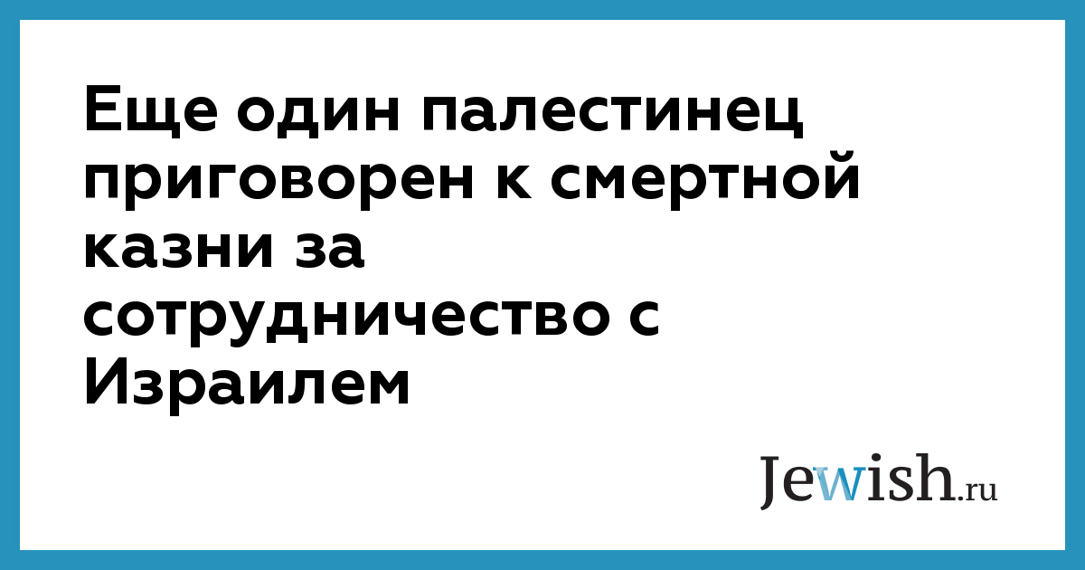 Еще один палестинец приговорен к смертной казни за сотрудничество с Израилем