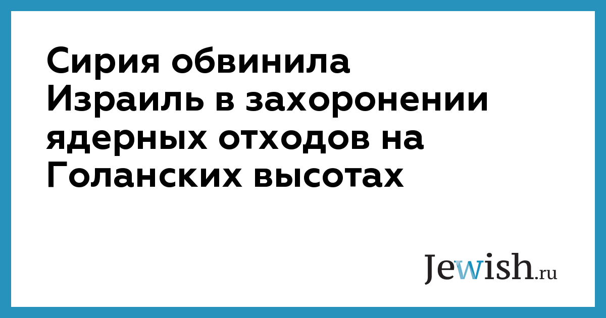 Сирия обвинила Израиль в захоронении ядерных отходов на Голанских высотах