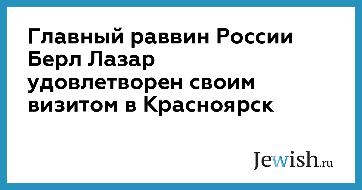 Главный раввин России Берл Лазар удовлетворен своим визитом в Красноярск