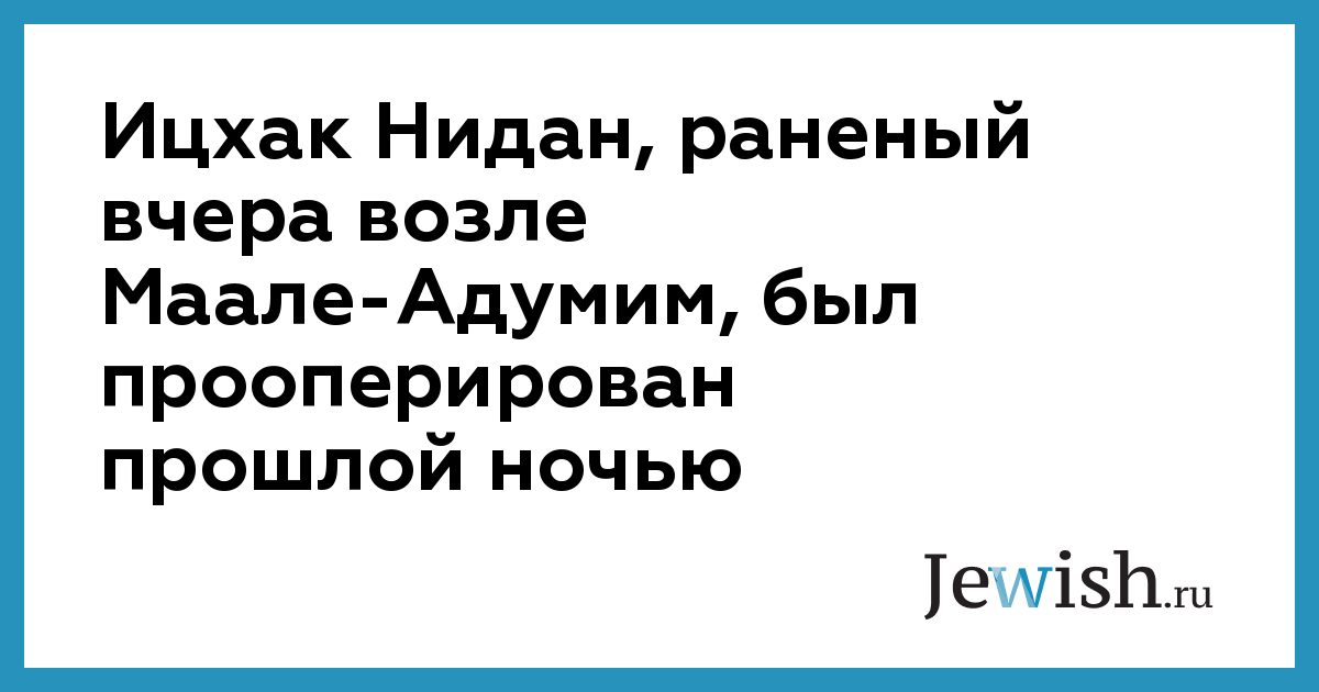Ицхак Нидан, раненый вчера возле Маале-Адумим, был прооперирован прошлой ночью
