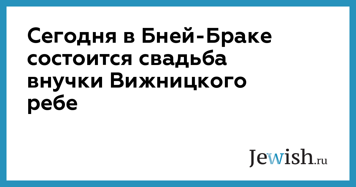 Сегодня в Бней-Браке состоится свадьба внучки Вижницкого ребе