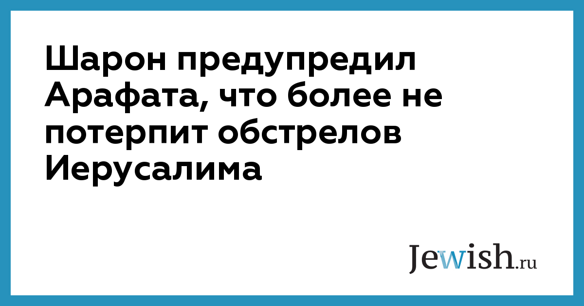 Шарон предупредил Арафата, что более не потерпит обстрелов Иерусалима