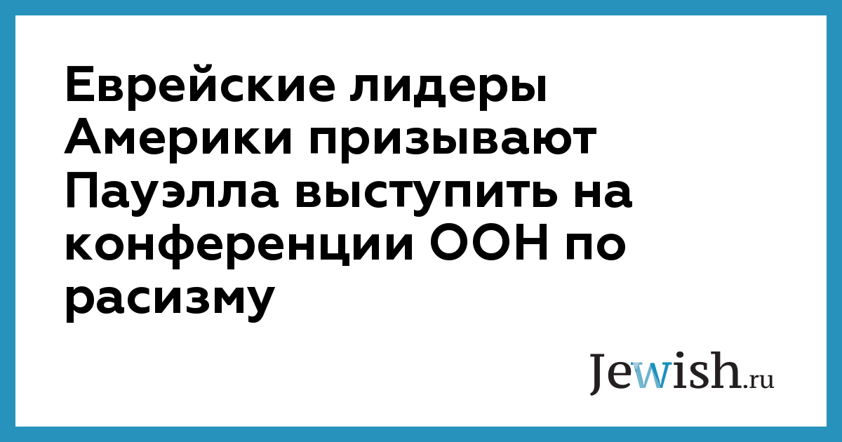 Еврейские лидеры Америки призывают Пауэлла выступить на конференции ООН по расизму