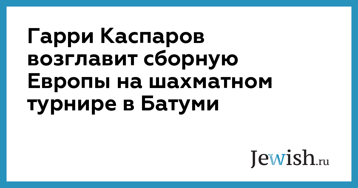 Гарри Каспаров возглавит сборную Европы на шахматном турнире в Батуми