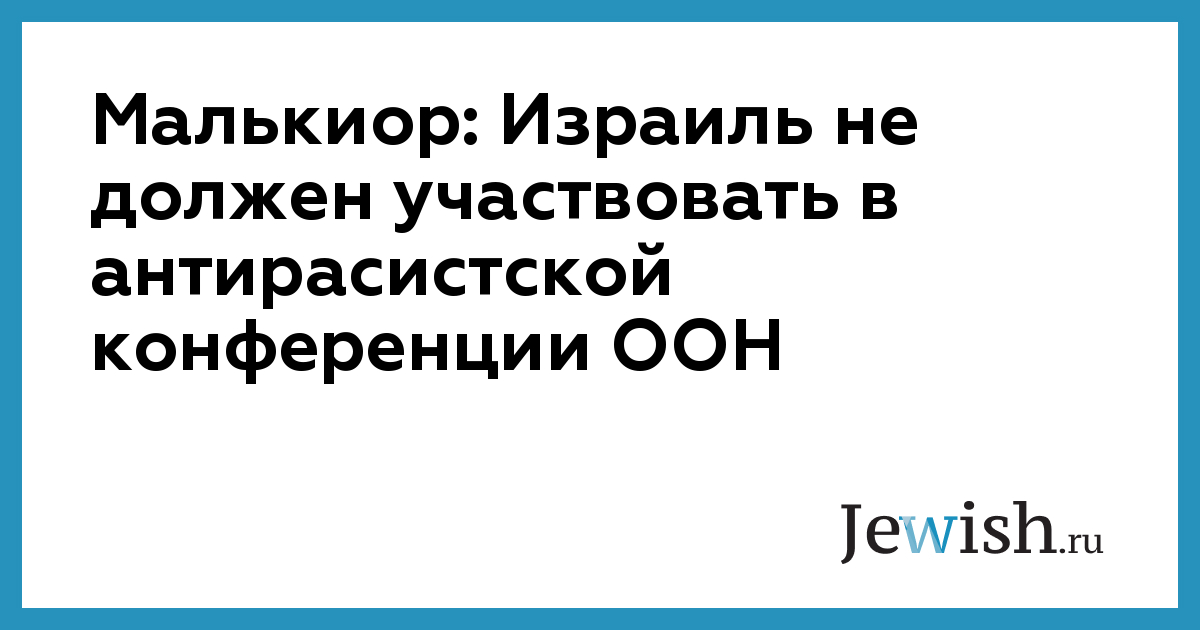 Малькиор: Израиль не должен участвовать в антирасистской конференции ООН