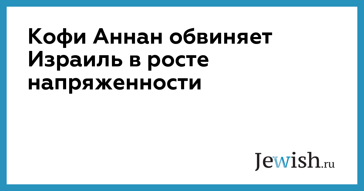 Кофи Аннан обвиняет Израиль в росте напряженности