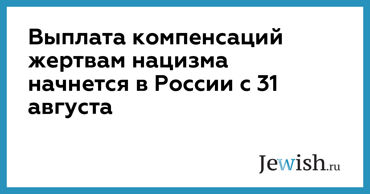 По ее словам, с этого дня начнется первый этап выплаты денежных компенсаций бывшим узникам нацистских концлагерей, гетто, людям, насильно угнанным в Германию с территории бывшего СССР и привлекавшимся к принудительным работам на промышленных предприятиях, а также военнопленным, находившимся в концлагерях.