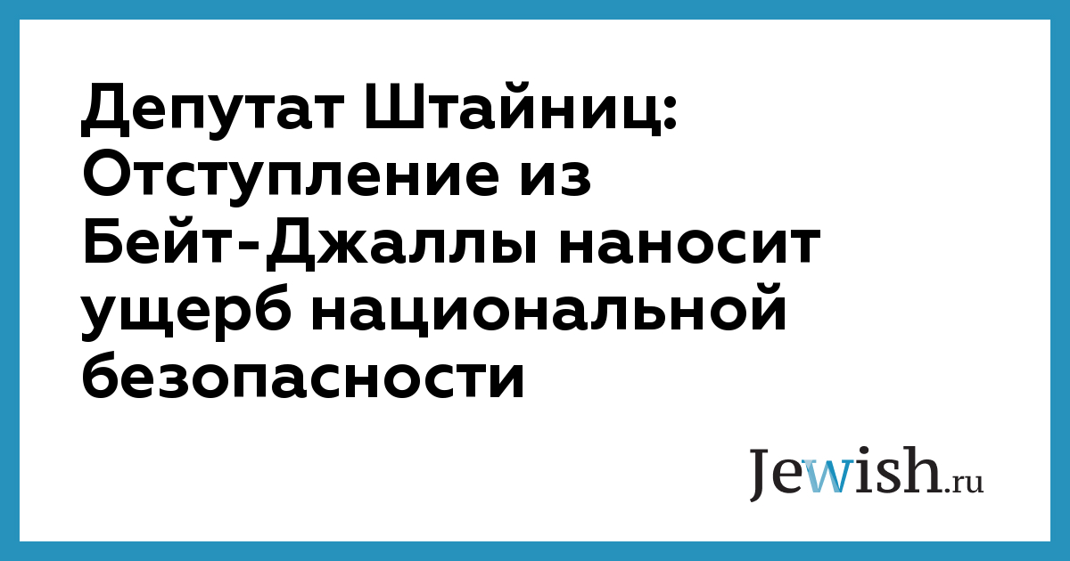 Депутат Штайниц: Отступление из Бейт-Джаллы наносит ущерб национальной безопасности