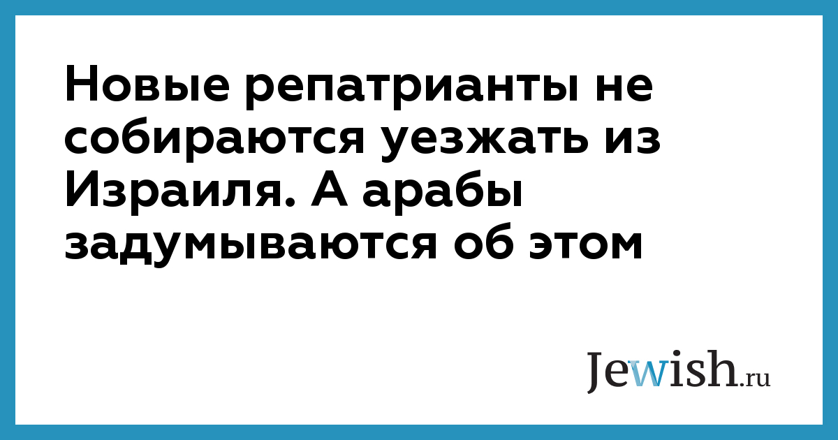 Новые репатрианты не собираются уезжать из Израиля. А арабы задумываются об этом