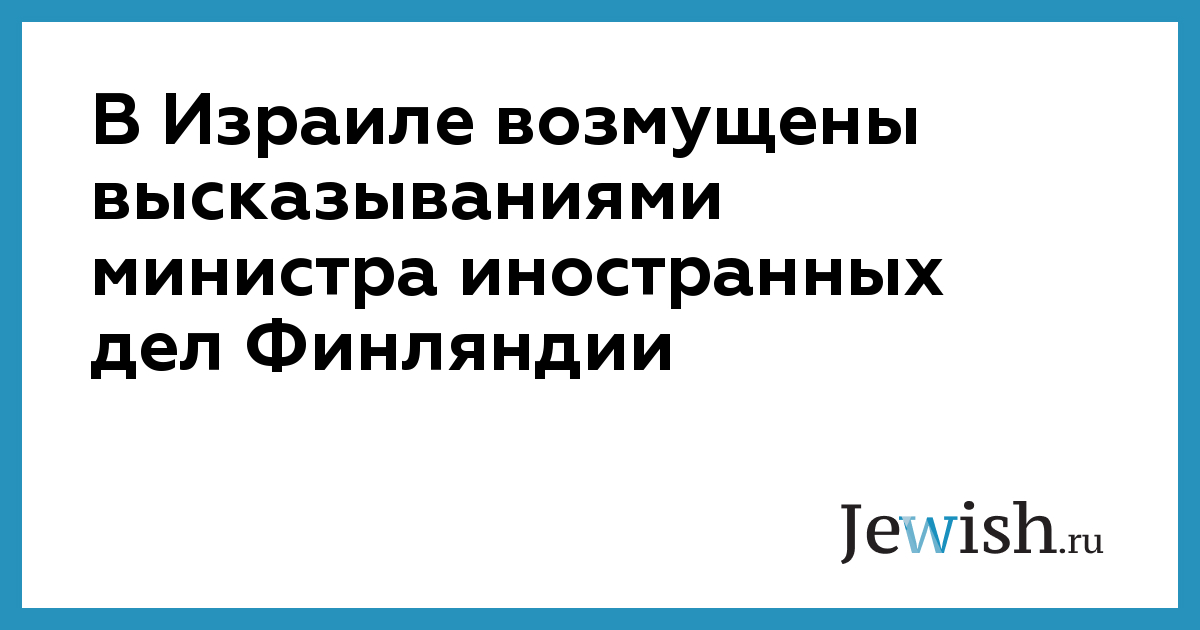 В Израиле возмущены высказываниями министра иностранных дел Финляндии