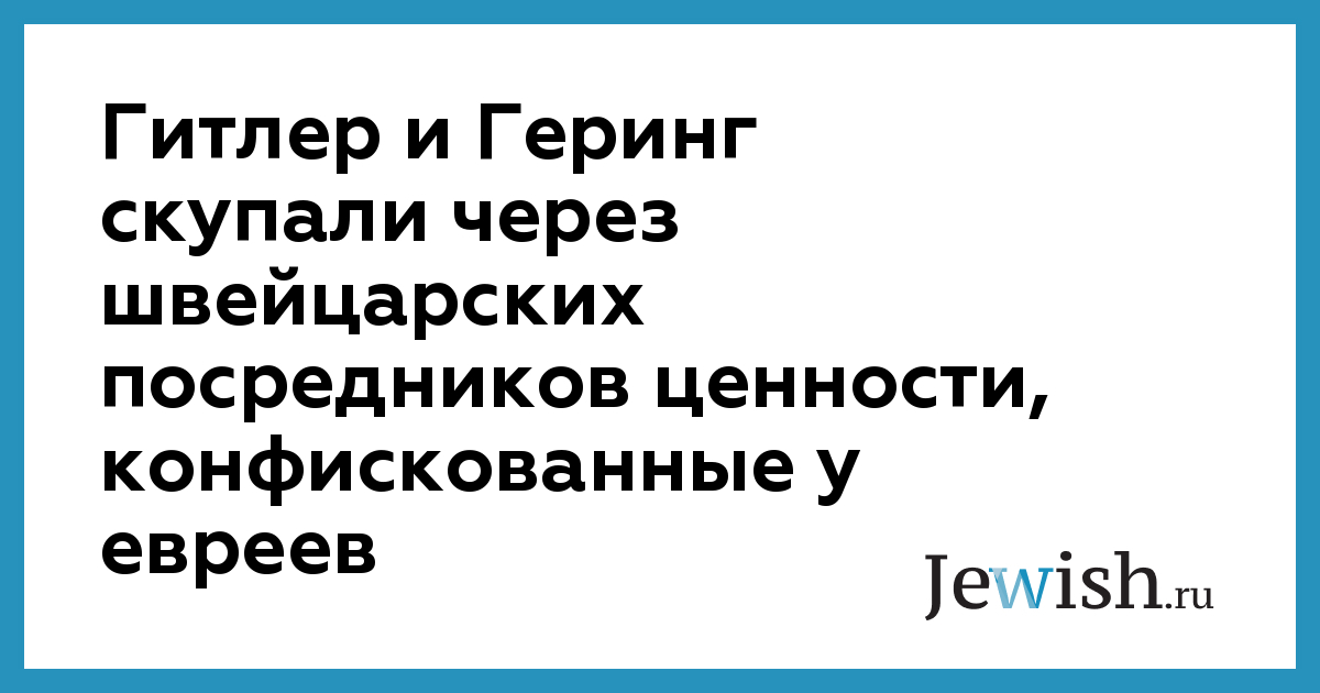 Гитлер и Геринг скупали через швейцарских посредников ценности, конфискованные у евреев