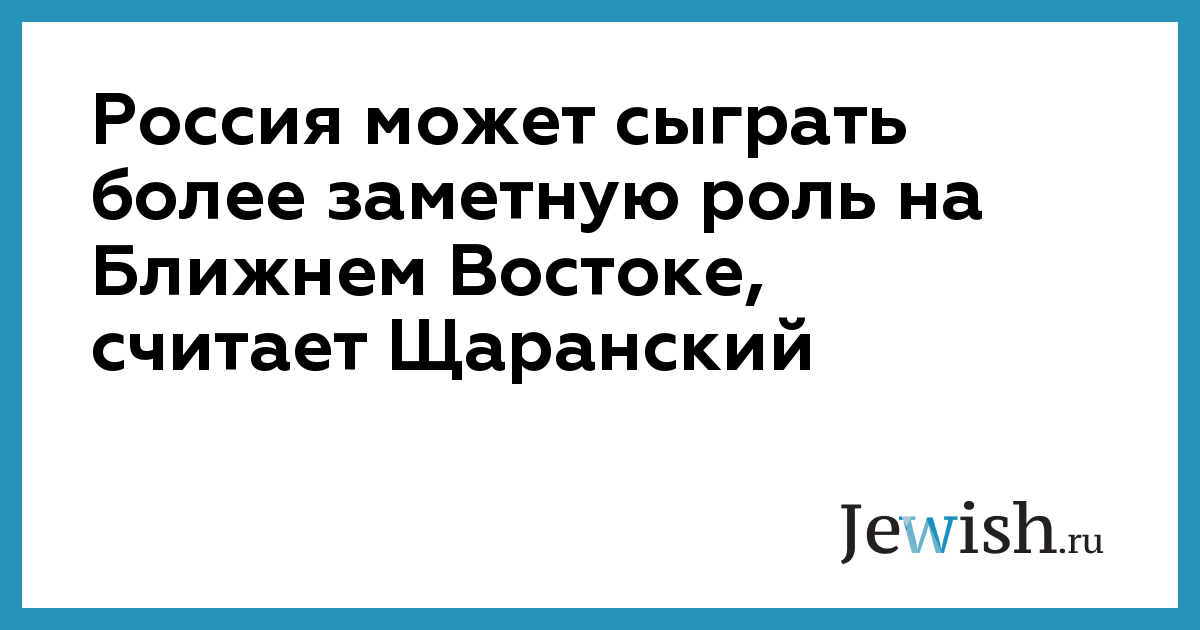 Россия может сыграть более заметную роль на Ближнем Востоке, считает Щаранский