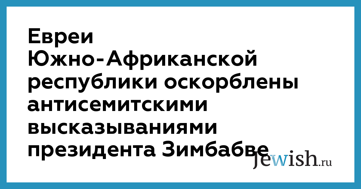 Евреи Южно-Африканской республики оскорблены антисемитскими высказываниями президента Зимбабве