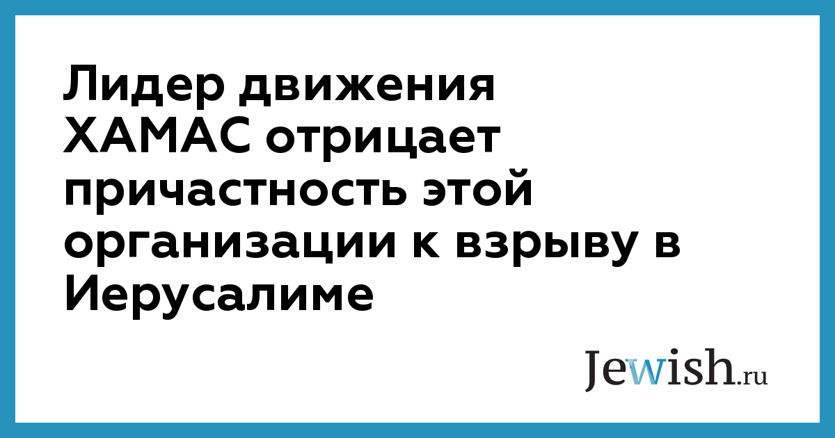 Лидер движения ХАМАС отрицает причастность этой организации к взрыву в Иерусалиме