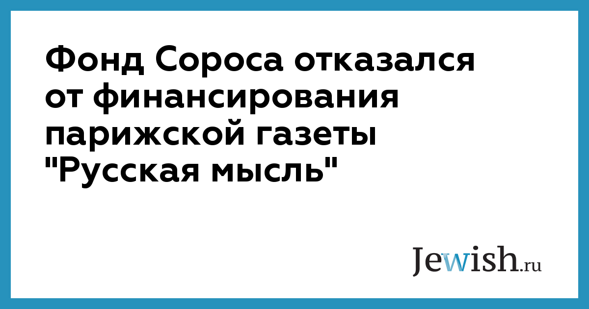 Фонд Сороса отказался от финансирования парижской газеты "Русская мысль"