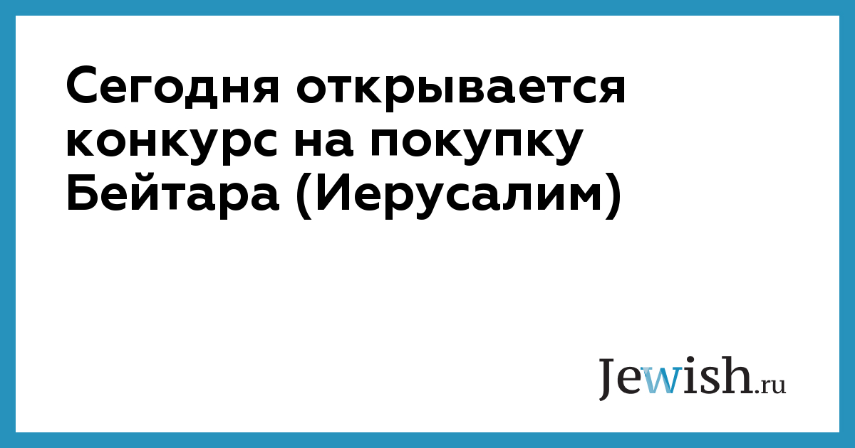 Сегодня открывается конкурс на покупку Бейтара (Иерусалим)
