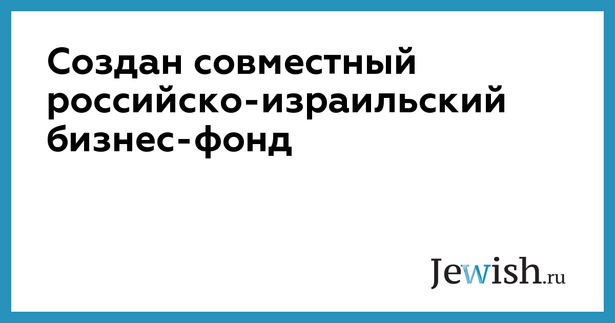 Создан совместный российско-израильский бизнес-фонд