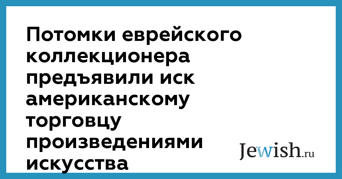 Потомки еврейского коллекционера предъявили иск американскому торговцу произведениями искусства