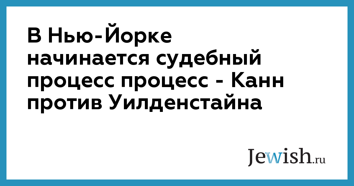 В Нью-Йорке начинается судебный процесс процесс — Канн против Уилденстайна