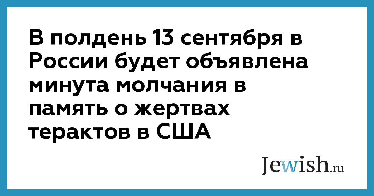 В полдень 13 сентября в России будет объявлена минута молчания в память о жертвах терактов в США