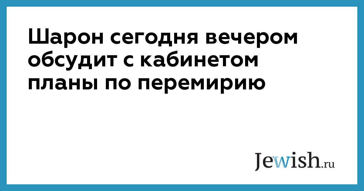 Шарон сегодня вечером обсудит с кабинетом планы по перемирию