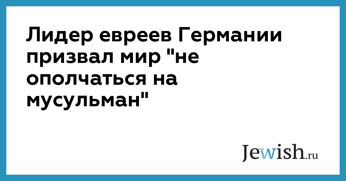Лидер евреев Германии призвал мир "не ополчаться на мусульман"