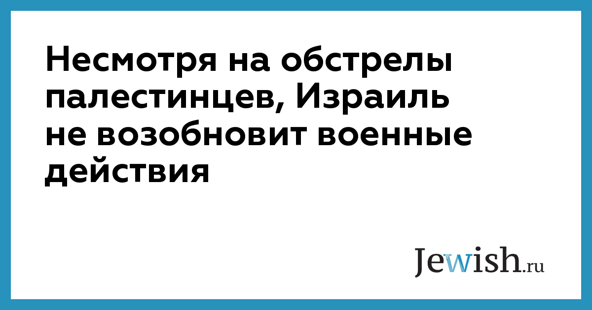 Несмотря на обстрелы палестинцев, Израиль не возобновит военные действия