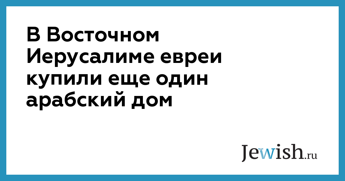 В Восточном Иерусалиме евреи купили еще один арабский дом