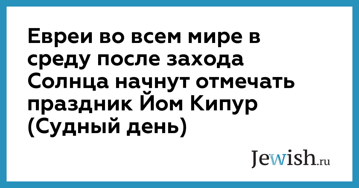 Евреи во всем мире в среду после захода Солнца начнут отмечать праздник Йом Кипур (Судный день)