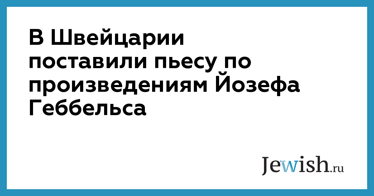 В Швейцарии поставили пьесу по произведениям Йозефа Геббельса