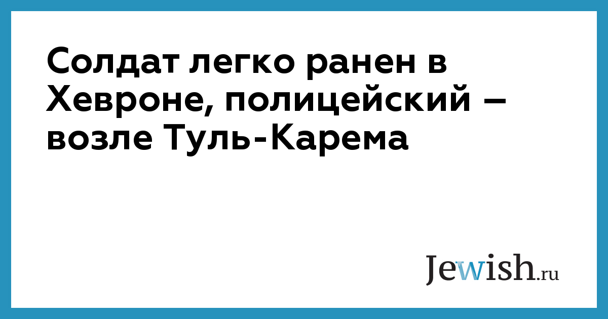 Солдат легко ранен в Хевроне, полицейский – возле Туль-Карема