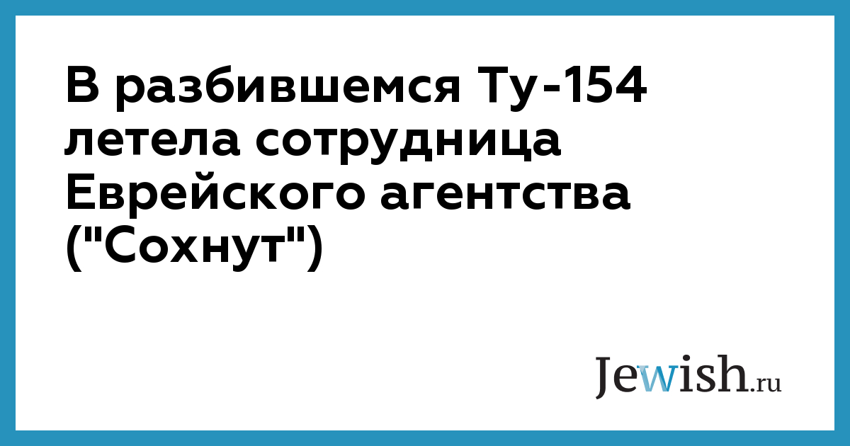 В разбившемся Ту-154 летела сотрудница Еврейского агентства ("Сохнут")
