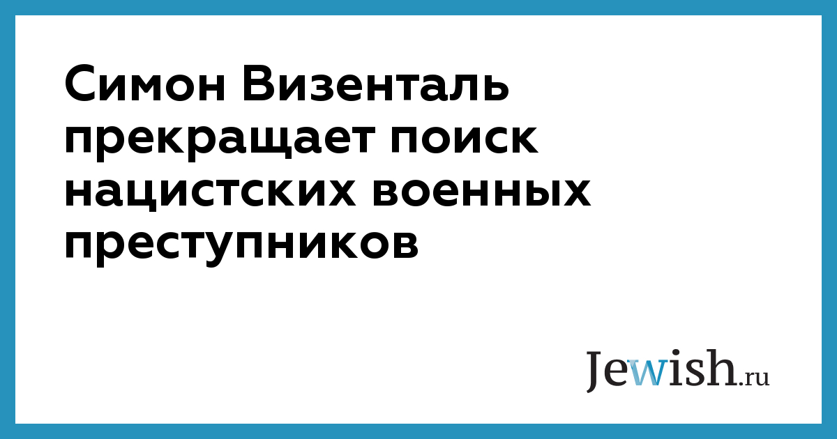 Симон Визенталь прекращает поиск нацистских военных преступников