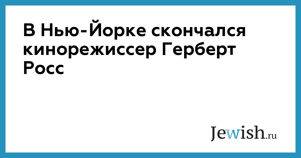 В Нью-Йорке скончался кинорежиссер Герберт Росс