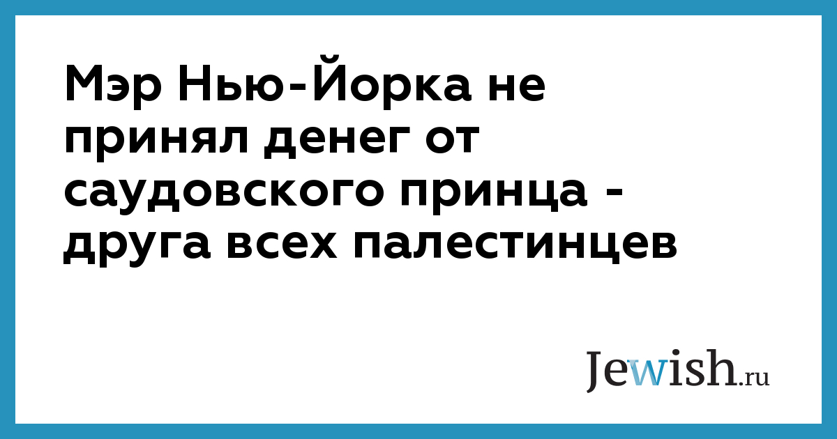 Мэр Нью-Йорка не принял денег от саудовского принца — друга всех палестинцев