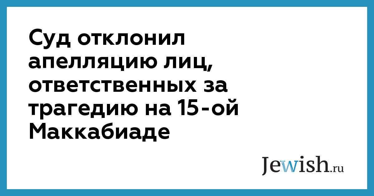 Суд отклонил апелляцию лиц, ответственных за трагедию на 15-ой Маккабиаде